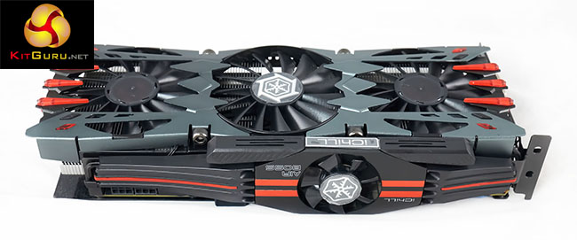 While we wouldn't consider the Inno3D GTX 980 ‘iChill Herculez X4 Air Boss Ultra' a beautiful looking graphics card, the sharp angular edges and bright patterns certainly attract the eye.