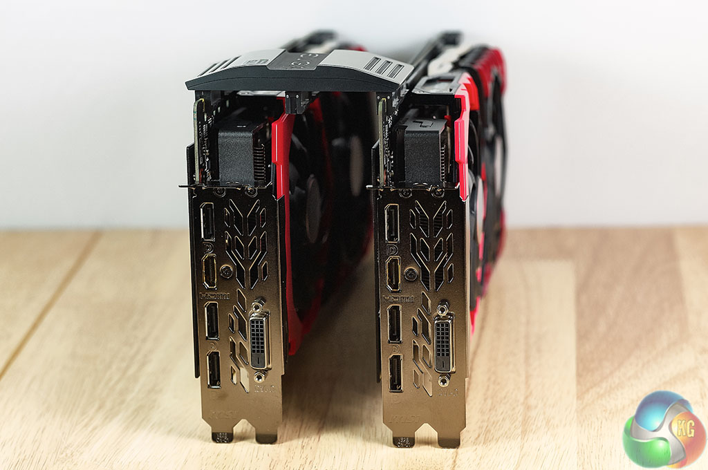 The MSI card takes power from the slot along with a single 8 pin and an extra single 6 pin (75 watt) PCIe power connector. The Gigabyte GTX 1080 G1 Gaming RGB took all the power it needed from a single 8 pin power connector, and the ASUS GTX 1080 Strix OC was equipped with two 8 Pin PCI e power connectors.