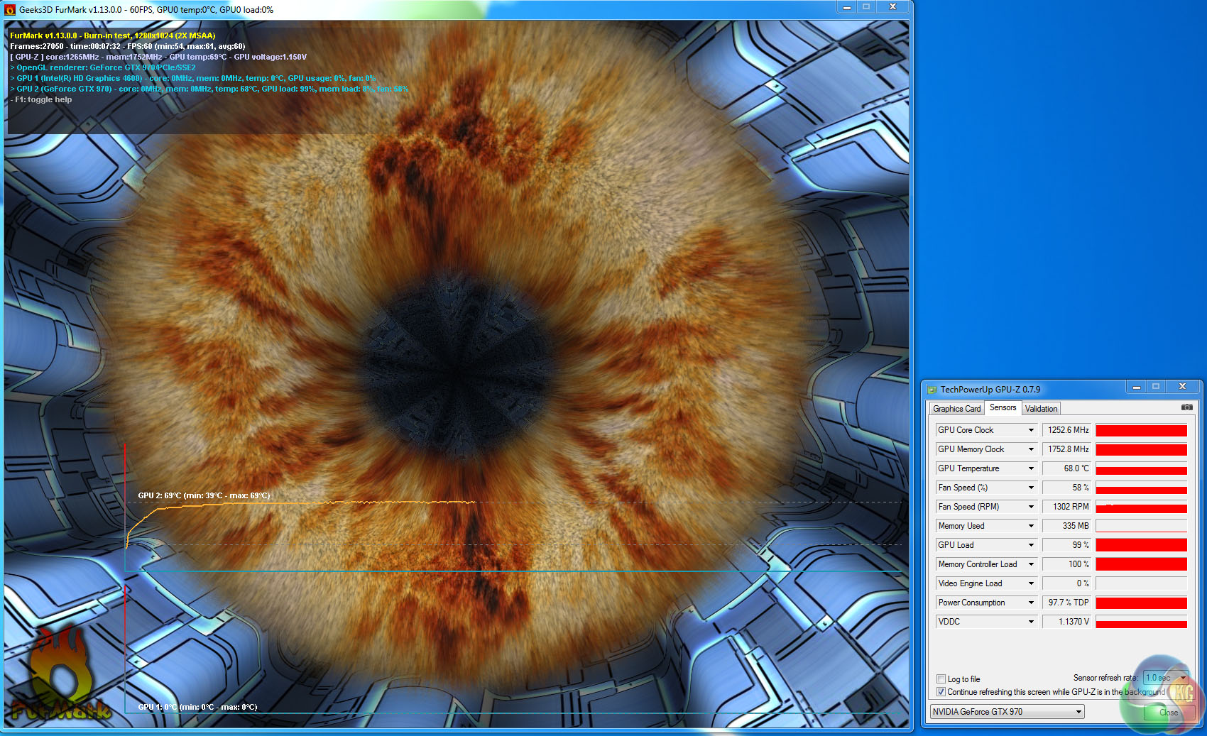 The tests were performed in a controlled air conditioned room with temperatures maintained at a constant 23c – a comfortable environment for the majority of people reading this.Idle temperatures were measured after sitting at the desktop for 30 minutes. Load measurements were acquired by playing Crysis Warhead for 30 minutes and measuring the peak temperature. We also have included Furmark results, recording maximum temperatures throughout a 30 minute stress test. All fan settings were left on automatic.