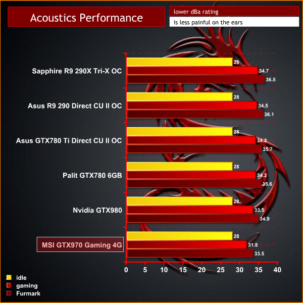This is an exceptionally quiet graphics card, idling with the fans in an inactive state. When 50c is reached, the fans start to spin up, hitting a maximum of 1,300 rpm when Furmark is running. When gaming, the card is basically silent – another major win for the efficient Maxwell architecture.