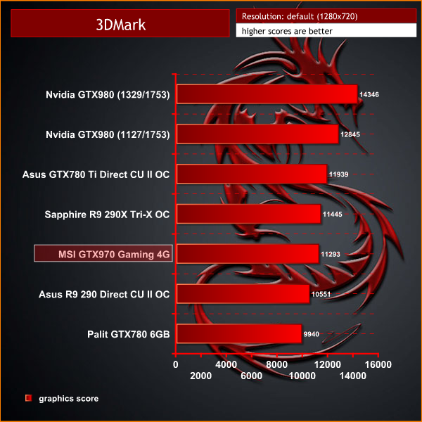The MSI GTX970 Gaming 4G scores well, almost on an even footing with the more expensive Sapphire R9 290X Tri-X OC.