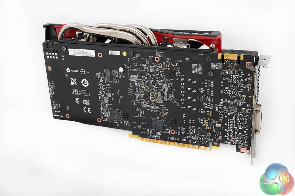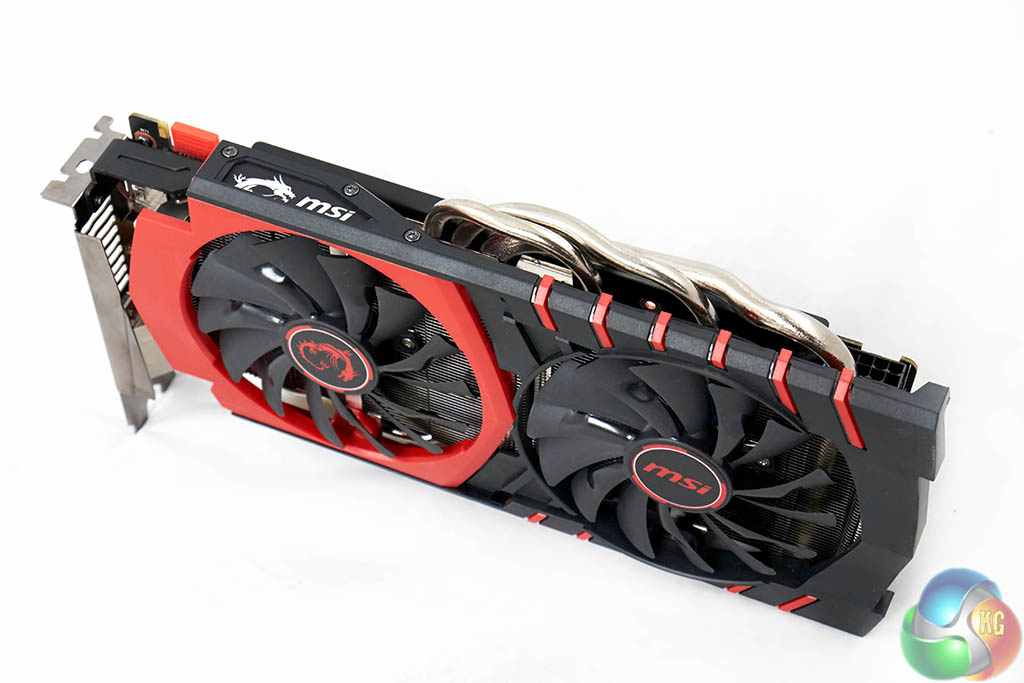 Its a very attractive looking graphics card – similar to other models in the MSI range we have reviewed before. The thick heatpipes are visible spanning most of the length of the PCB.