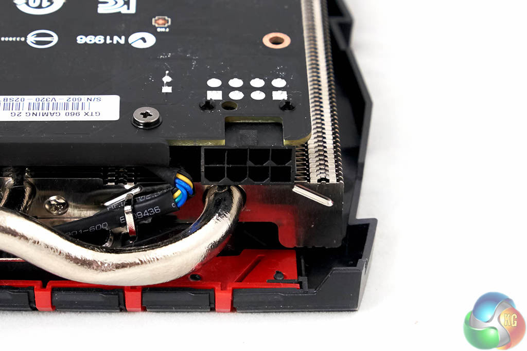Nvidia's reference GTX960 design takes power from a single 6 pin power connector, but MSI have opted for a higher spec 8 pin connector. Normally the reason for this is to provide stability under heavily overclocked situations.