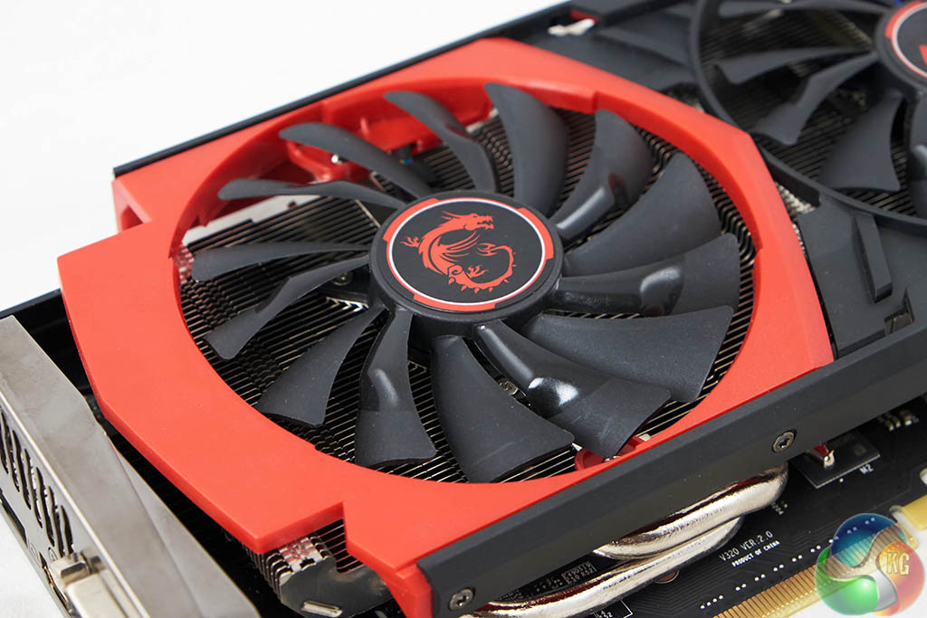The MSI GTX960 Gaming 2G OC is built on a black PCB and features two fans which are surrounded by a red and black shroud.