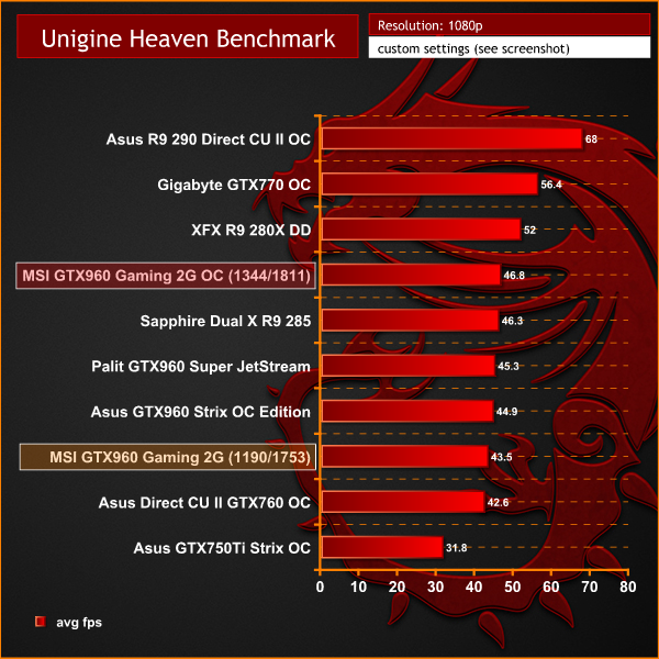 Performance slots in as we would expect, scoring at the bottom of the GTX960 pile until we manually overclock the card to 1,344mhz.
