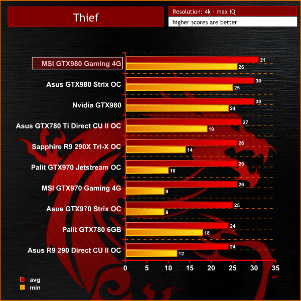 A super demanding engine at 4k. If you take the view that 25 frames per second is the ‘cut off' point for acceptable motion, then an overclocked GTX980 solution is the only single GPU to deliver playable frame rates.