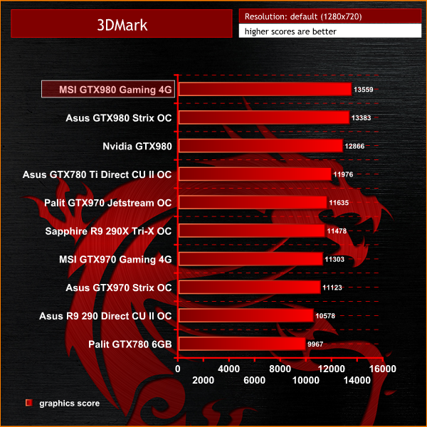 The latest Direct X 11 benchmark from Futuremark shows a final score of 13,559 points. Another top position, just ahead of the Asus GTX980 Strix OC.