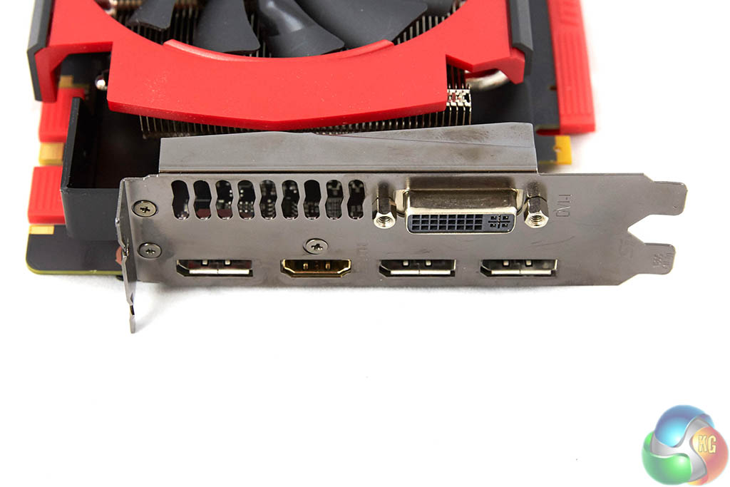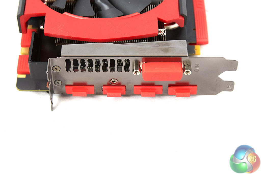 We loved the red I/O port covers that much we had to take a photo ‘before and after'. The MSI card ships with a single DVI-D port. There are three DisplayPorts 1.2 and a single HDMI 2.0 port along the bottom of the I/O plate. If you wish, you can use all these ports at the same time for triple monitor gaming.