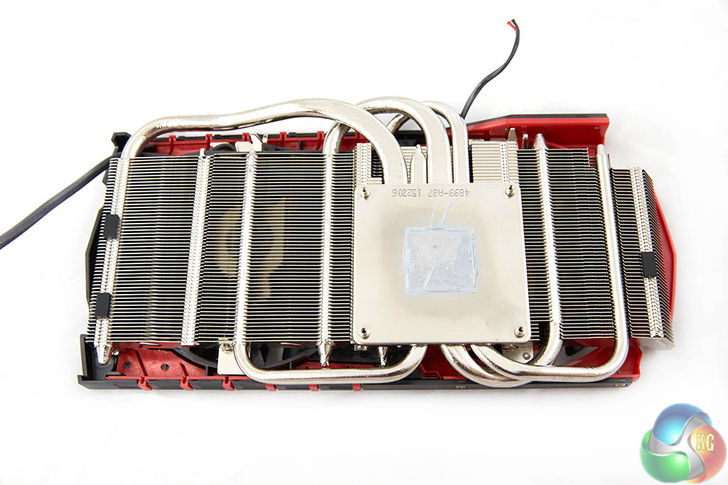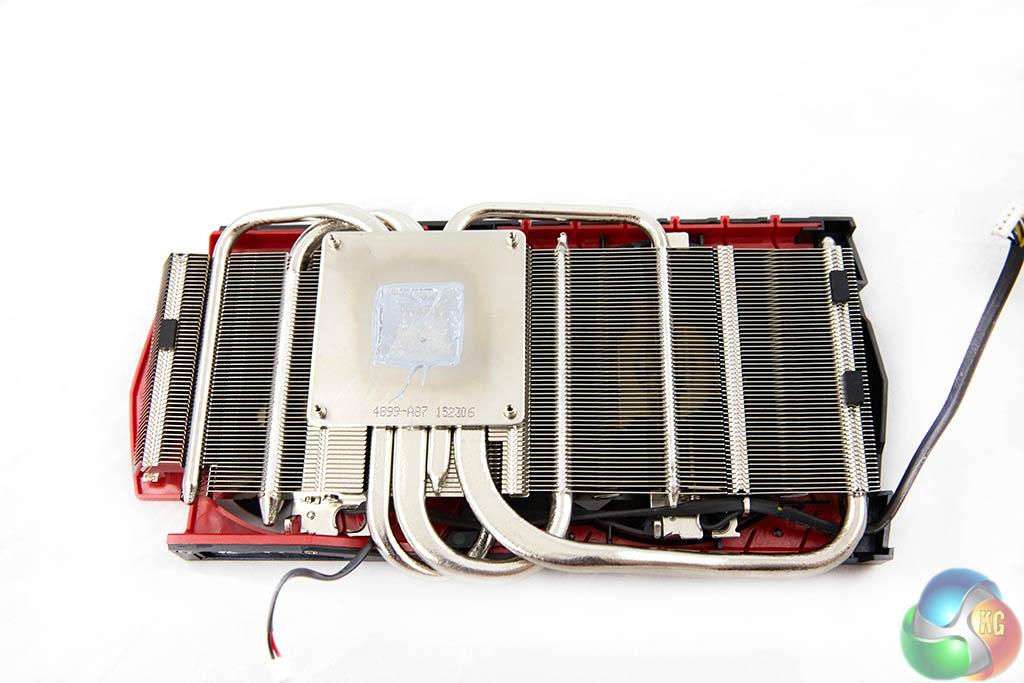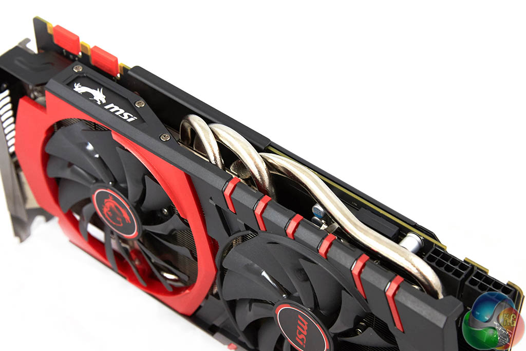 The MSI card is equipped with nickel plated copper heatpipes which run from the core across the length of the PCB.