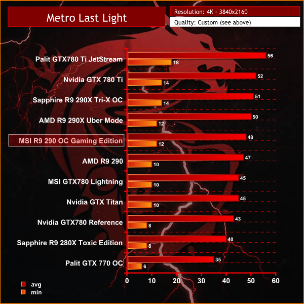 The overclocked MSI R9 290 scores well, outperforming the MSI GTX780 Lightning.
