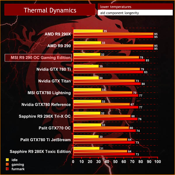 The running temperatures are a little higher than I would have expected, especially when directly compared to the Tri-X cooler fitted to the Sapphire R9 290 and R9 290X. Still, they are better than the reference card, although that wouldn't be too difficult.