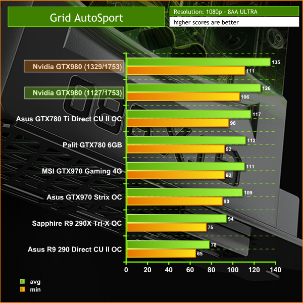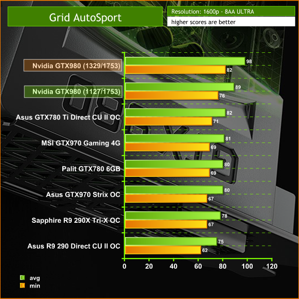 The Nvidia GTX980 holds the top position with this game engine, having no problems whatsoever holding 75fps+ at 1600p. The overclocked Asus GTX780 Ti takes up the position directly behind the new GTX980.