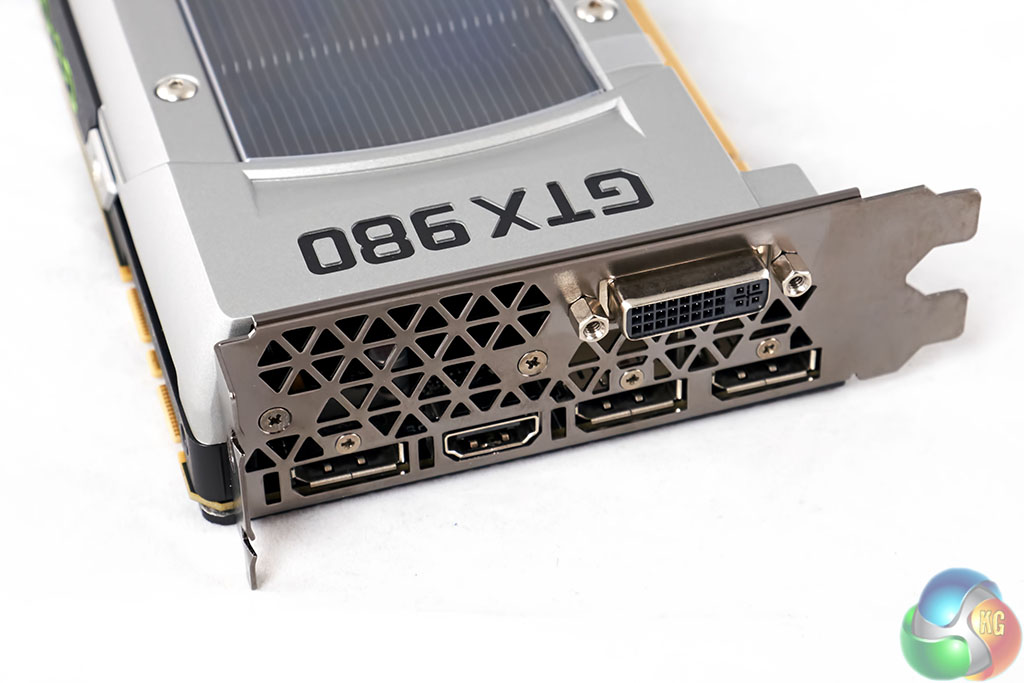 Nvidia have three DisplayPort connectors available on the I/O backplate, alongside an HDMI 2.0 capable connector. This HDMI port will handle 4K resolutions at up to 60hz. There is also a dual link DVI connector on the top row. Up to four of these output connectors can be used simultaneously.