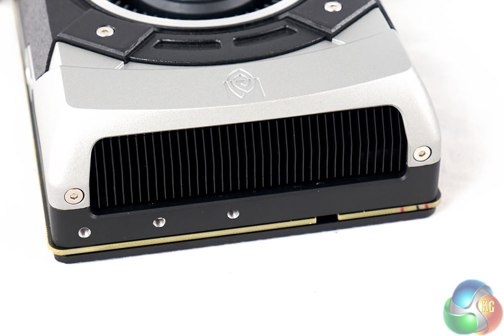 Nvidia say that by removing this part of the backplate you will be effectively improving airflow between the cards when they are directly beside each other. We can't test this yet, as we only have one reference board in hand.