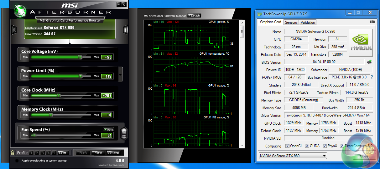 To overclock the Nvidia GTX980 today, we used the latest version of MSI's Afterburner tool (Version 4.0.0), which is based on Rivatuner.