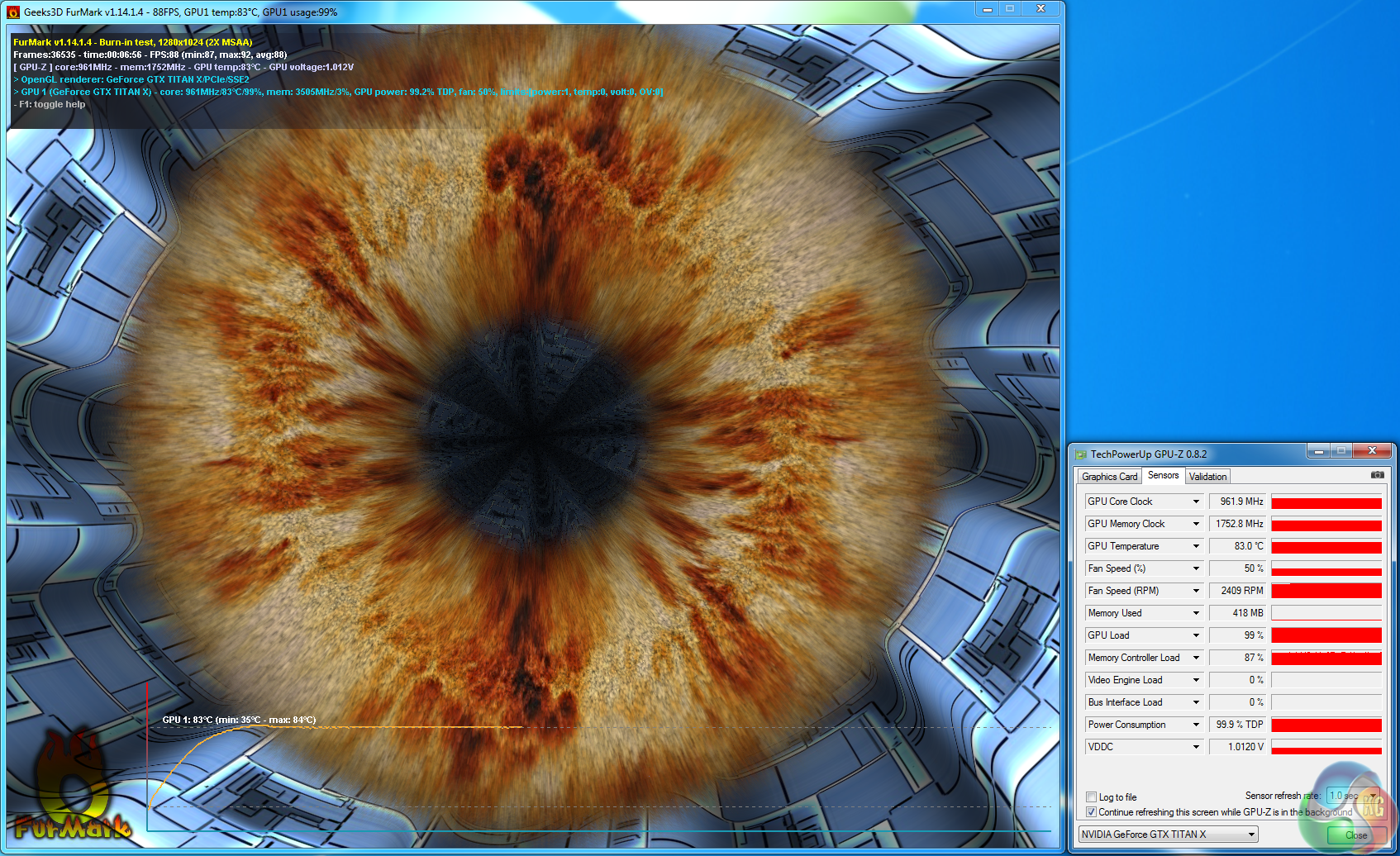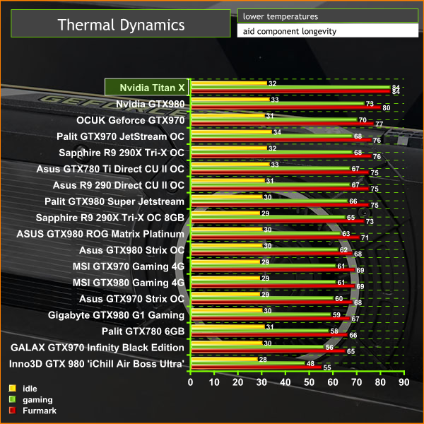 Idle temperatures are great. Under load the card hits 84c after a short while. The GPU is using Nvidia's GPU Boost 2.0 which dynamically adjusts clock speed and voltage settings, factoring in temperatures.