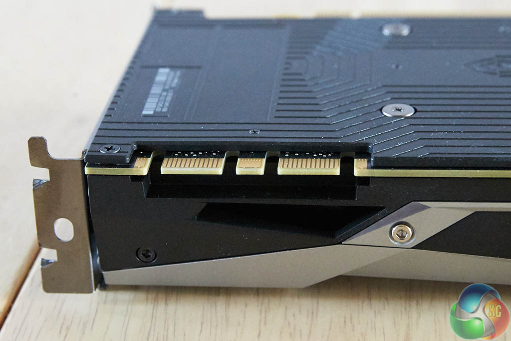 The SLI connectors are shown in the image above. If you haven't already, then I recommend you head back to the third page of this review to get detailed information on the new SLI configuration introduced today with Pascal hardware.