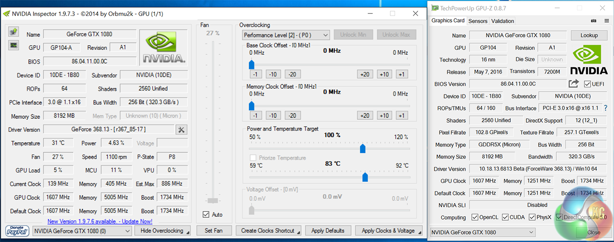 The core clock is set at 1,607mhz with a boost frequency set at 1,734mhz – a massive increase over previous generation Maxwell hardware. We do recommend you take a look earlier in the review at the Tech overview page to get to grips with some of the new changes and enhancements in the Pascal architecture.