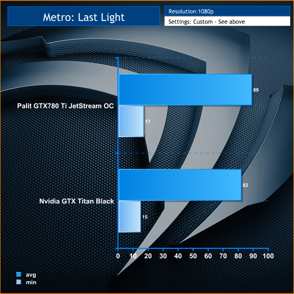The Palit GTX780 Ti Jetstream has the edge at these settings, gaining a 7 frames per second advantage.