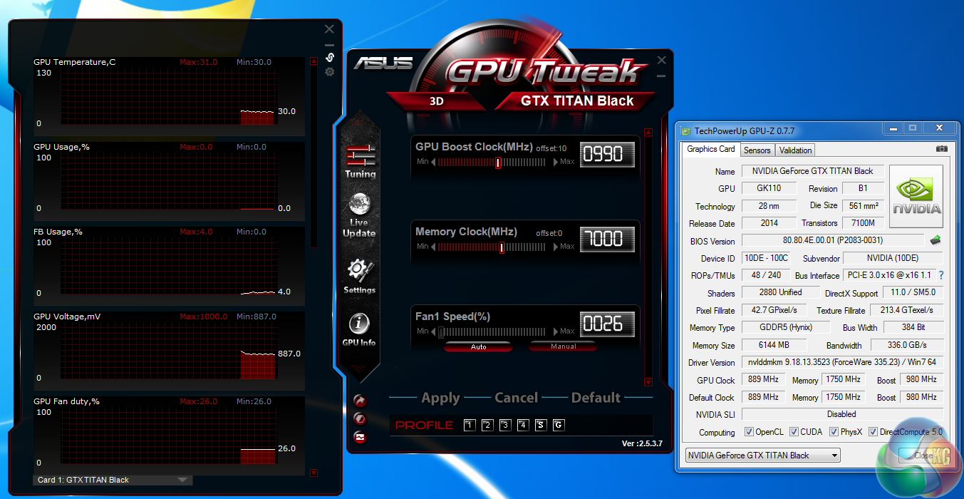 Above – GPUz screenshots of the Nvidia GTX Titan Black and the Palit GTX 780 Ti Jetstream OC.
