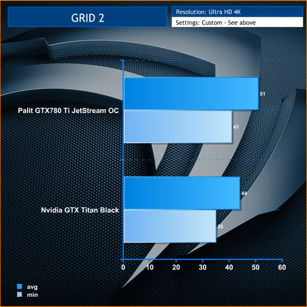 I was very impressed to see such playable results at these ultra high settings. The Palit GTX780 Ti JetStream OC has a clear performance advantage and it is actually noticeably smoother throughout. The extra 3GB of GDDR5 memory on the Titan Black makes no difference in this game at Ultra HD 4K.