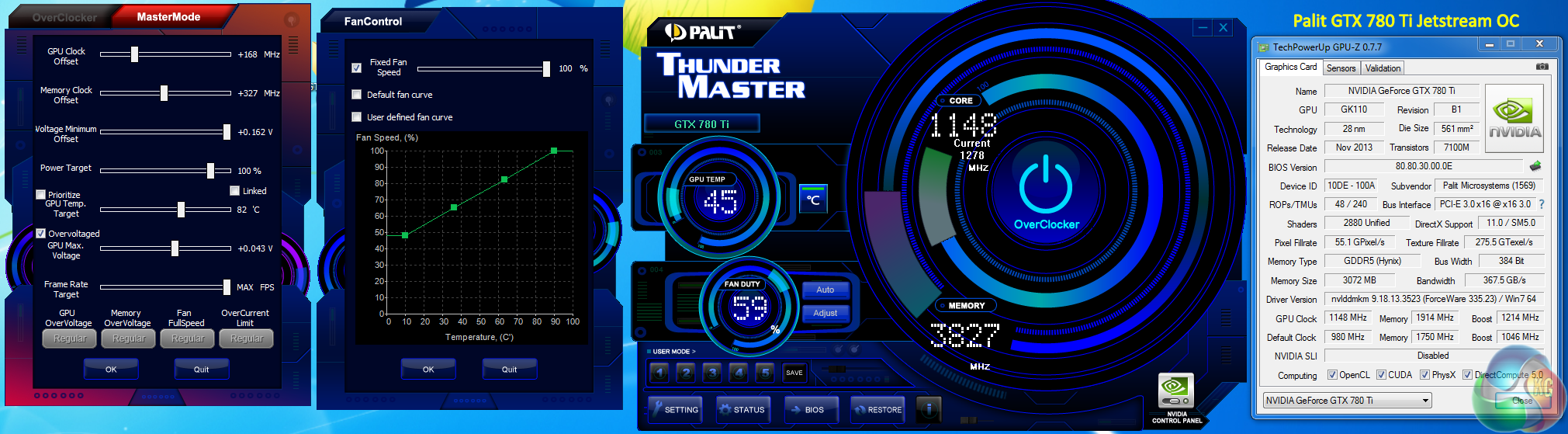 To overclock today, we used the latest version of ASUS GPU Tweak with the Titan Black and Palit's own overclocking software with their GTX780 Ti Jetstream OC.