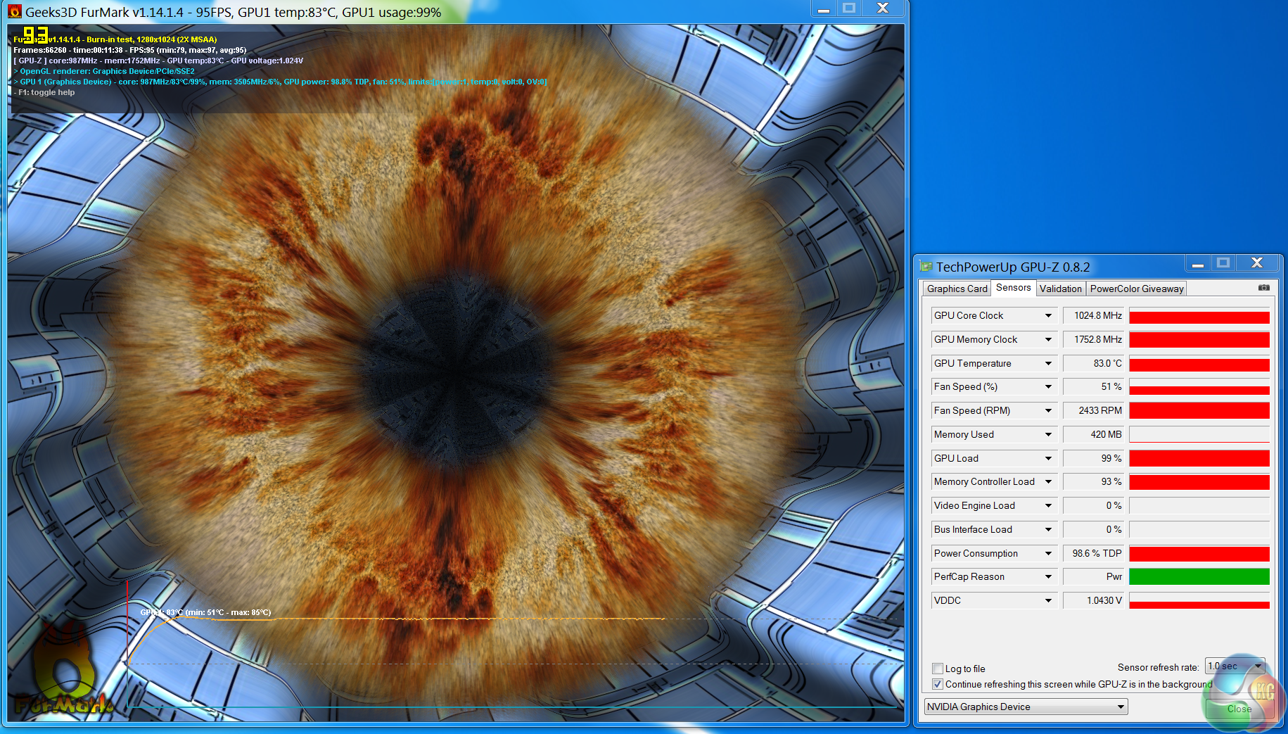The tests were performed in a controlled air conditioned room with temperatures maintained at a constant 23c – a comfortable environment for the majority of people reading this.Idle temperatures were measured after sitting at the desktop for 30 minutes. Load measurements were acquired by playing Crysis Warhead for 30 minutes and measuring the peak temperature. We also have included Furmark results, recording maximum temperatures throughout a 30 minute stress test. All fan settings were left on automatic.