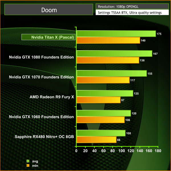 We haven't had time to test Doom with all the graphics cards in our offices, so we selected a handful of cards from both Nvidia and AMD partners at 1080p, 1440p and Ultra HD 4k.