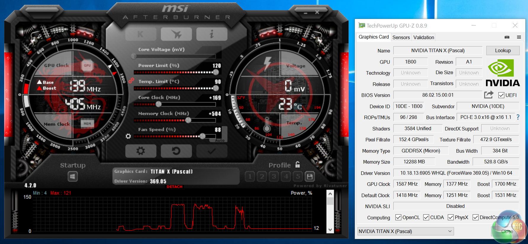 We increase the power limit to 120, and the temp limit to 90c and increase the fan speeds to help ensure we minimise any throttling. Obviously noise levels are increased, but gamers wanting the maximum performance are likely to deal with extra fan noise, or they will be wearing headphones or listening to the game audio via a speaker system.