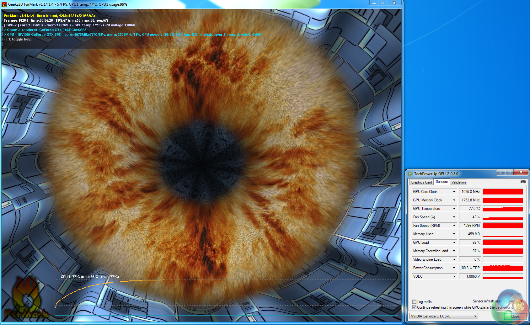 The tests were performed in a controlled air conditioned room with temperatures maintained at a constant 23c – a comfortable environment for the majority of people reading this.Idle temperatures were measured after sitting at the desktop for 30 minutes. Load measurements were acquired by playing Crysis Warhead for 30 minutes and measuring the peak temperature. We also have included Furmark results, recording maximum temperatures throughout a 30 minute stress test. All fan settings were left on automatic.