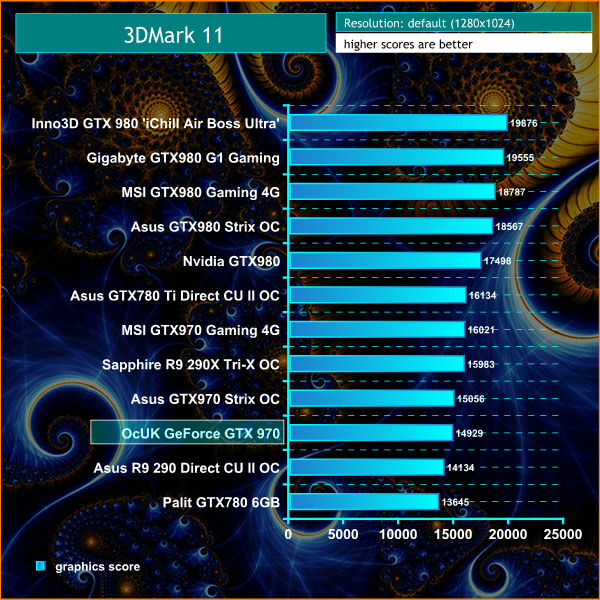 Good result for the OCUK Geforce GTX970, with a graphics score of 14,929.
