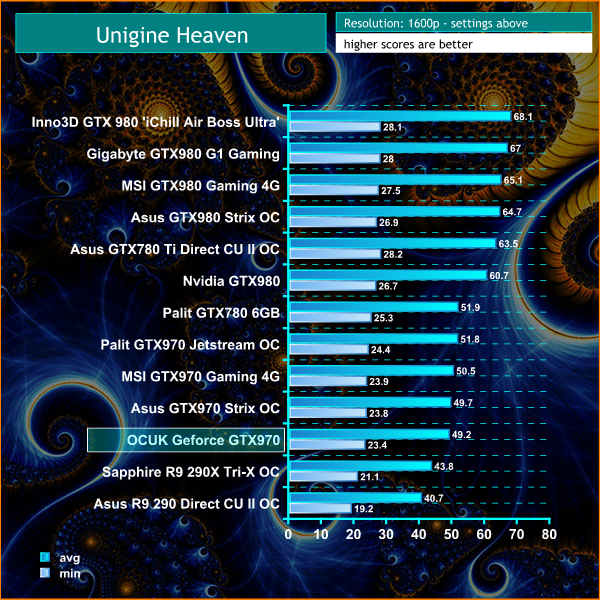 At these settings the OcUK GeForce GTX 970 ‘NVIDIA 970 Cooler Edition' averages 49.2 frames per second.