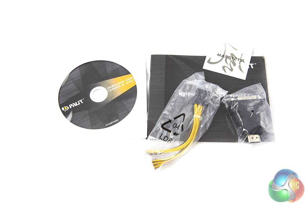 The bundle includes some power and video converter cables, a software disc, a sticker and some literature. We do recommend you snag the latest beta drivers direct from the Nvidia website.