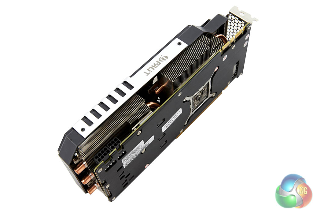 The Palit card is equipped with a thick heatsink which spans the full length of the PCB, as shown above.