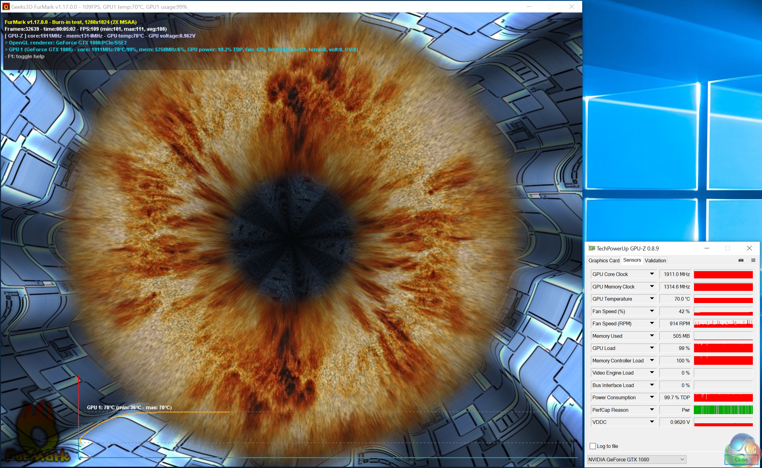 The Palit GTX 1080 GameRock Premium Edition cooler proves to be very effective with performance very similar to the cooler fitted to the Gigabyte GTX 1080 G1 Gaming.