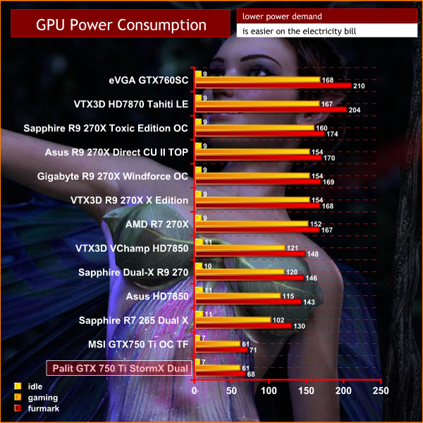 As shown in the previous review, the GTX 750 Ti is an incredibly efficient graphics card, demanding around 60 watts under gaming load.