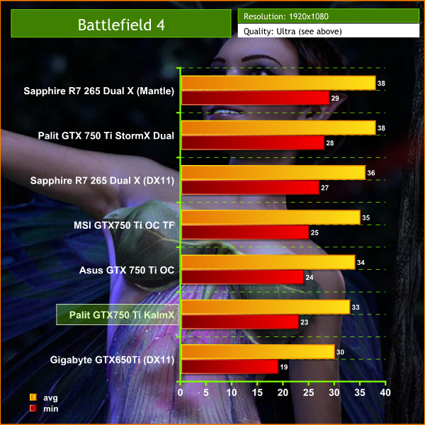We test the Sapphire R7 265 in both ‘Direct X’ and ‘Mantle’ modes and compare against the GTX750 Ti cards. We are using the latest patch as of 20th July 2014.