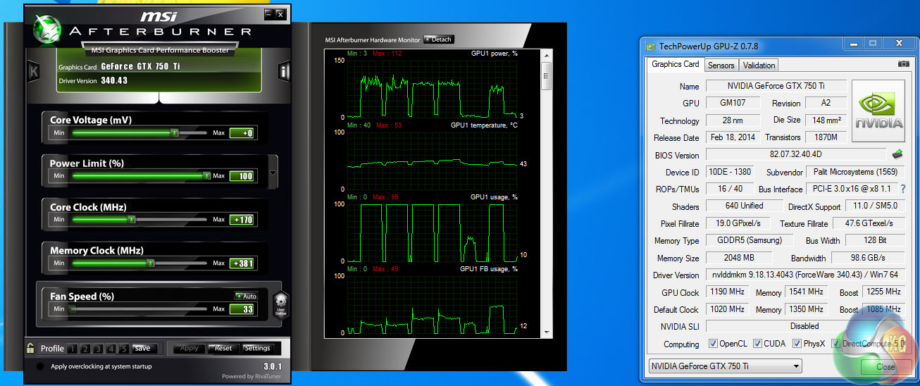 Considering the Palit GTX750 Ti KalmX is passively cooled there is a surprising amount of headroom available before instability occurs. We managed to push the core to 1,190mhz, or by an additional 16.6%.