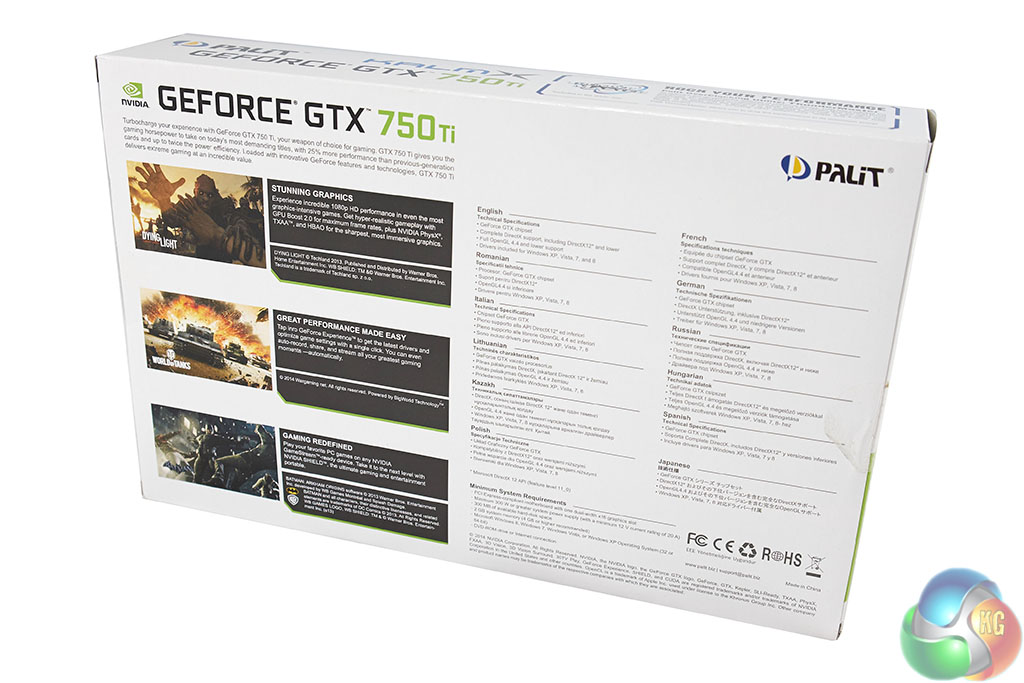 Nvidia's GTX750 Ti doesn't need any power connectors to operate – it takes all the power it needs direct from the PCI e slot. Actually this is not completely accurate, the ASUS GTX750 Ti OC which we reviewed back on March 7th 2014 required a single 6 pin connector which was a little disappointing. The Palit GTX750 Ti KamX we are reviewing today doesn't require one however, so bonus points to Palit.