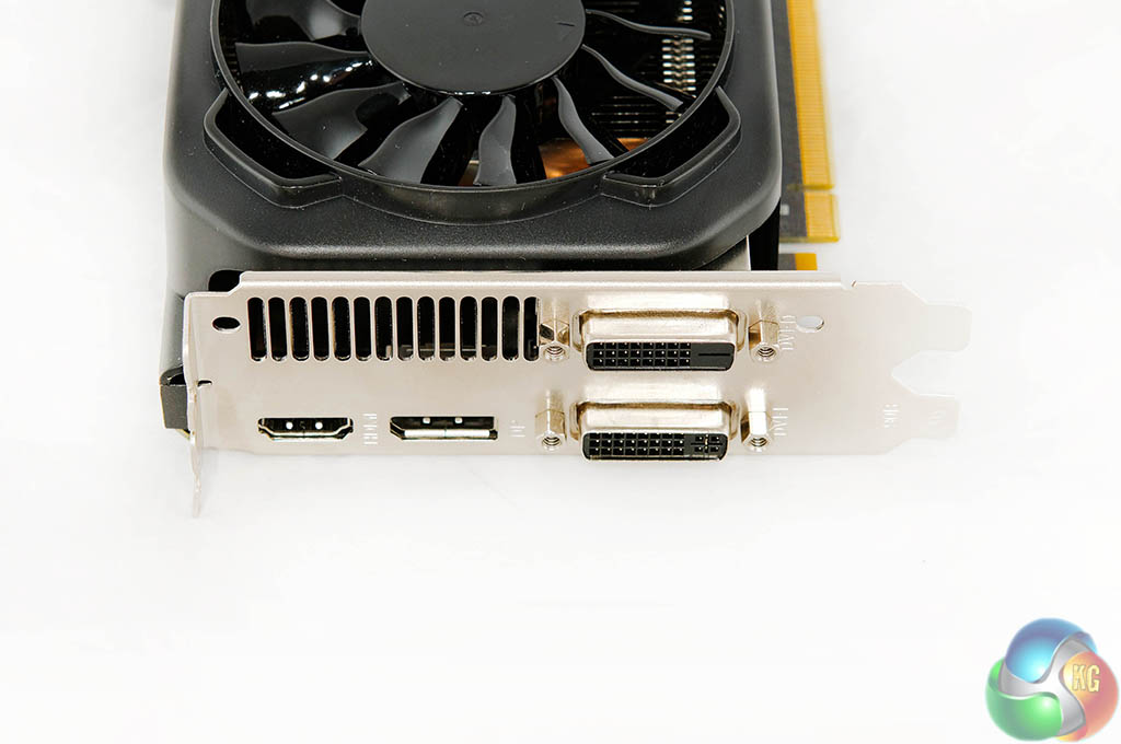 The I/O plate has dual DVI connectors alongside a full sized DisplayPort and HDMI connector.
