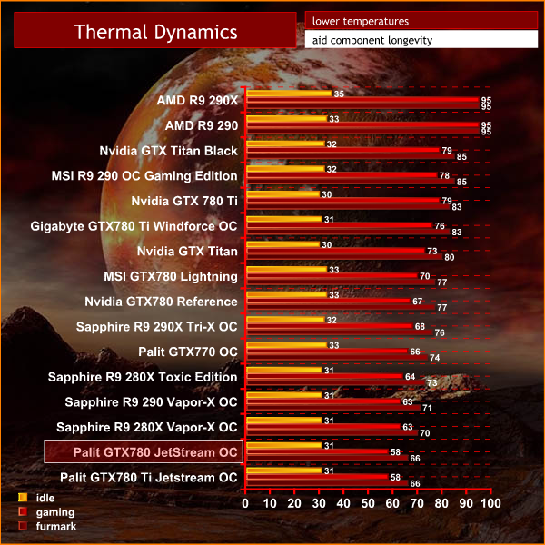 Palit's Jetstream cooler is one of the best air cooled designs money can buy right now, claiming top position in our chart.