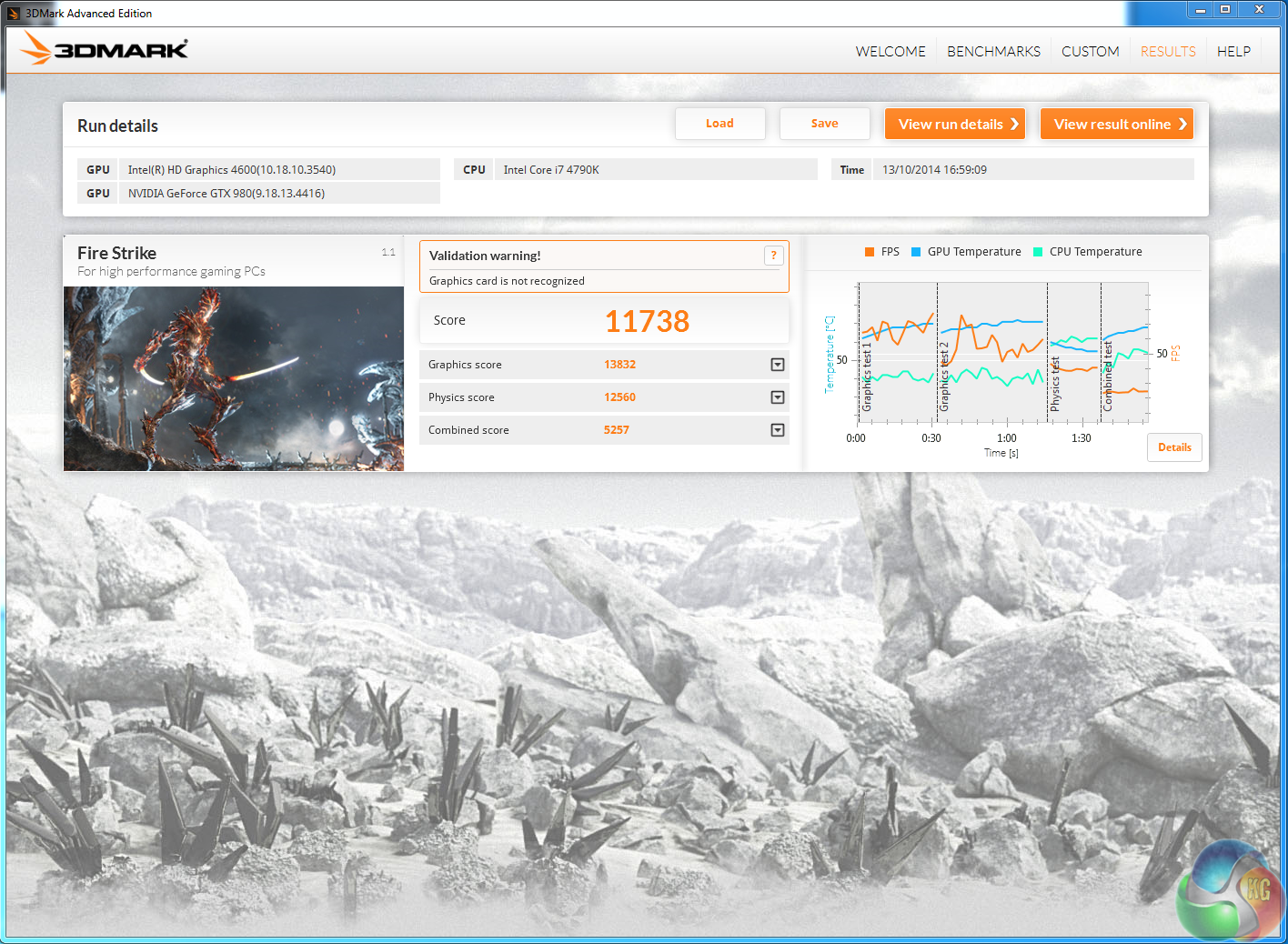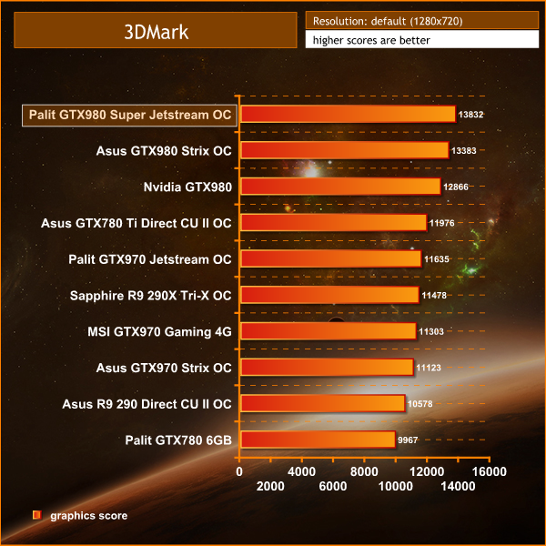 Another top position for the Palit GTX980 Super JetStream, scoring 13,832 points.
