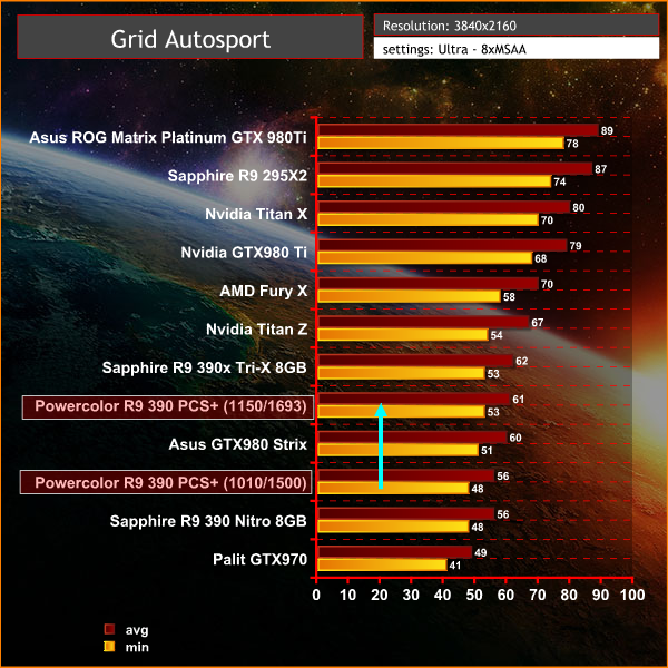 An average of 56 frames per second at Ultra HD 4k is a good result. Manually overclocking the card to the limits increases the frame rate variable by 5 frames per second.