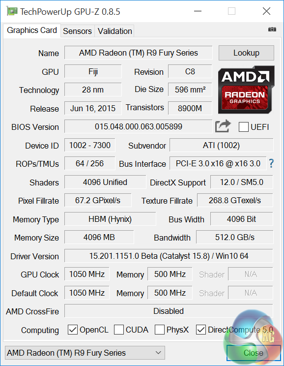 AMD Fury X (1,050 mhz core / 500 mhz memory)