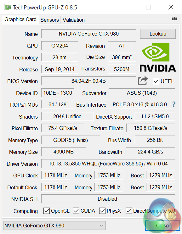 Asus GTX980 Strix (1,178 mhz core / 1,753 mhz memory)