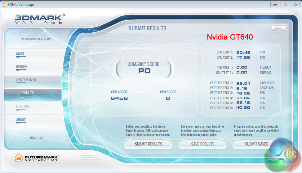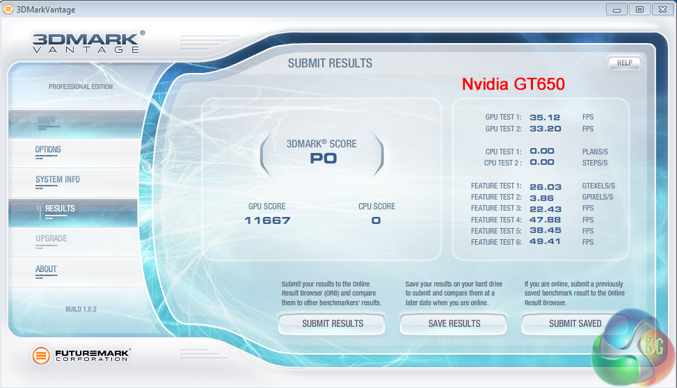 Futuremark released 3DMark Vantage, on April 28, 2008. It is a benchmark based upon DirectX 10, and therefore will only run under Windows Vista (Service Pack 1 is stated as a requirement) and Windows 7. This is the first edition where the feature-restricted, free of charge version could not be used any number of times. 1280×1024 resolution was used with performance settings.