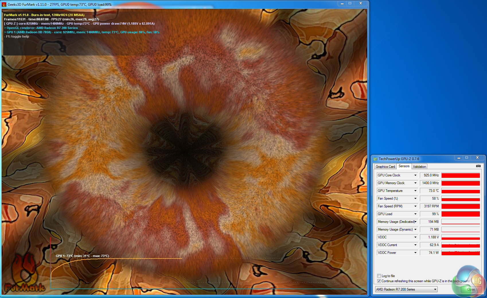 Load measurements were acquired by playing Crysis Warhead for 30 minutes and measuring the peak temperature. We also have included Furmark results, recording maximum temperatures throughout a 30 minute stress test. All fan settings were left on automatic.