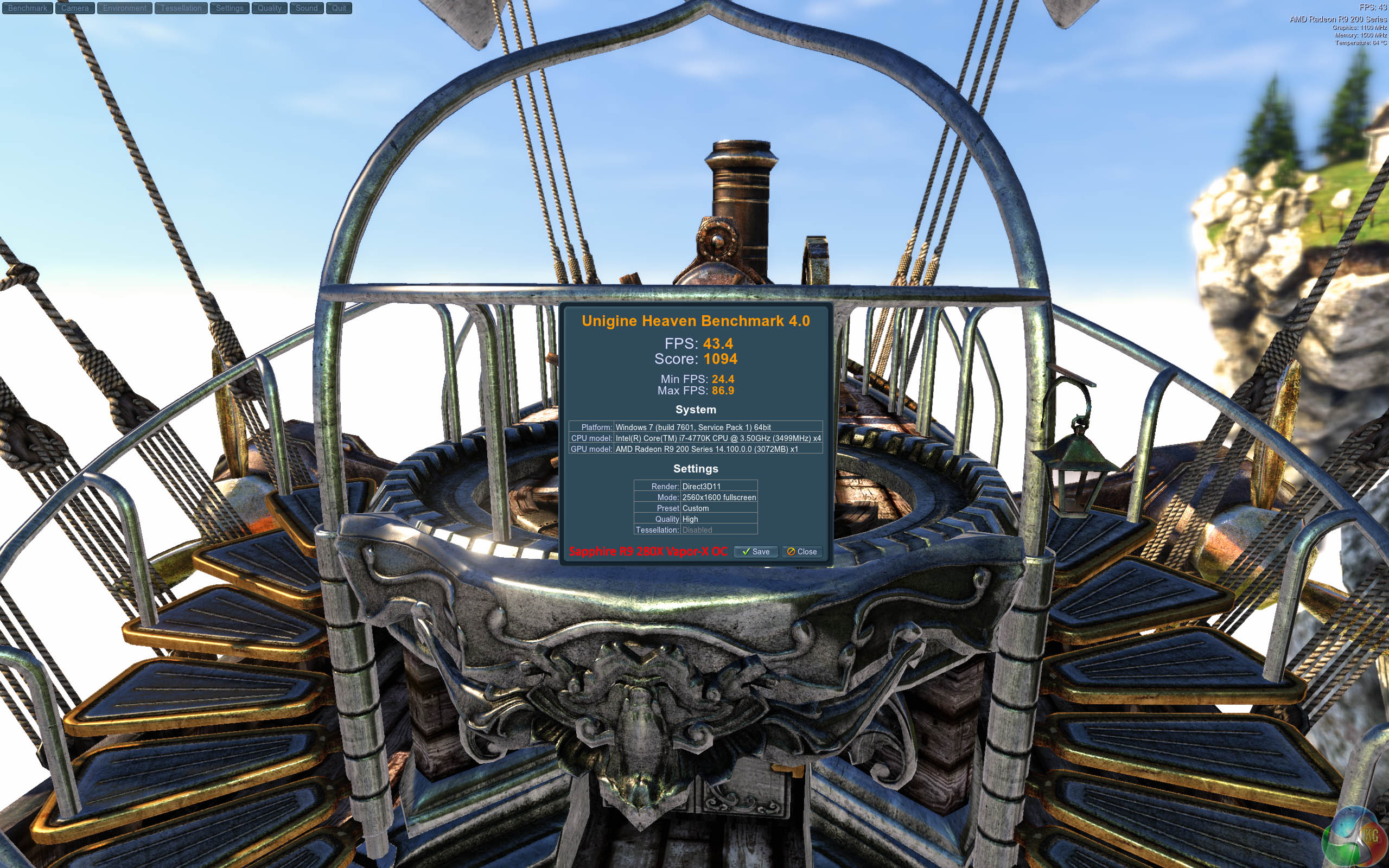 Heaven Benchmark is a DirectX 11 GPU benchmark based on advanced Unigine engine from Unigine Corp. It reveals the enchanting magic of floating islands with a tiny village hidden in the cloudy skies. Interactive mode provides emerging experience of exploring the intricate world of steampunk.