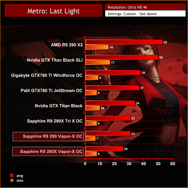 I’m actually surprised by the 1920×1080 results just ran my Powercolor PCS+OC R9 290 through the same test Ultra preset AA 4x and Tesselation off my results were as follows (were any of your settings different?):