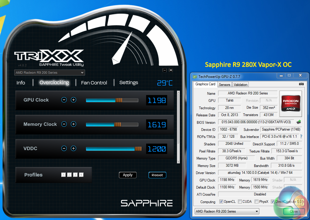 To overclock today we are using the latest version of Sapphire's TriXX software.